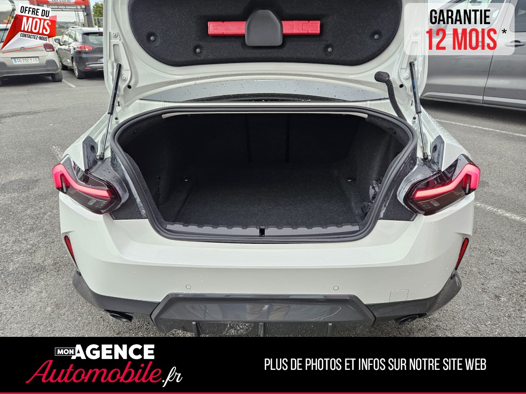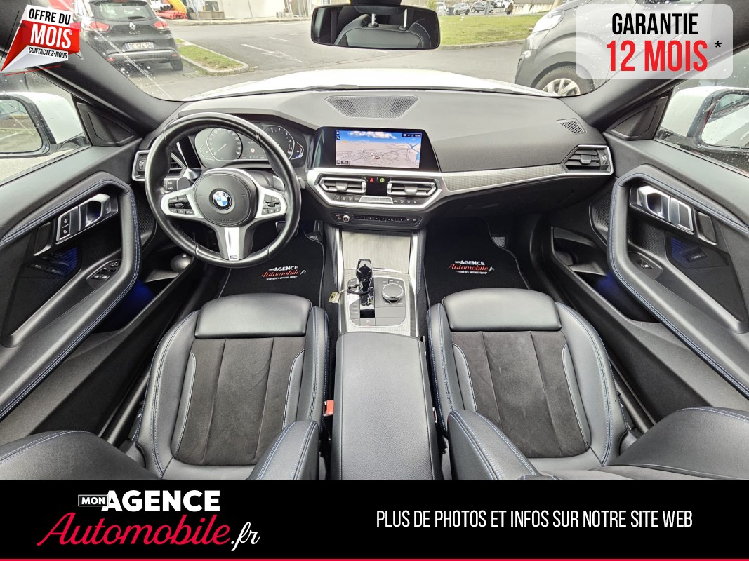 Previous Next Demander un accès pour découvrir le tarif 2022 millésime 57 203 kilométrage Essence énergie Automatique transmission 2022 millésime 57 203 kilométrage Essence énergie Automatique transmission Marque BMW Modèle Série 2 G42 COUPE 220IA 184Ch M SPORT BVA7 Couleur Blanc Chevaux fiscaux 10 CV Taux d'émission de CO2 147 Vignette Crit'Air Nombre de portes 3 portes Places assises 4 Référence 0241799 Options & équipements Intérieur Extérieur Sécurité Autres 2 Vitres électriques Accoudoir central Aide au démarrage en côte Allumage automatique des feux Banquette AR Rabattable 2/3-1/3 CarPlay Climatisation automatique Climatisation bizone Direction assistée Détecteur de pluie Fermeture centralisée à distance Frein de parking automatique Key less go (démarrage sans clé) Limiteur de vitesse Ordinateur de bord Ouverture/Fermeture sans clé Palettes au volant Prise AUX Prise USB Radar de stationnement détection arrière Radar de stationnement détection avant Reconnaissance vocale Régulateur de vitesse Rétroviseur central électrochrome Sellerie cuir alcantara Sièges baquets Sièges chauffants avant Stop and Start Suspension pilotée Système GPS Système téléphone Bluetooth Trappe à Ski Vitres teintées Volant cuir Volant multifonctions Volant réglable en hauteur Éclairage d'ambiance Crochet d'attelage amovible Feux directionnels Rétroviseurs électriques Rétroviseurs dégivrants Rétroviseurs rabattables électriquement Peinture intégrale Jantes alu Feux de jours à leds Full Leds Feux adaptatifs ABS - AFU Airbags Anti-démarrage Anti-patinage Contrôle de pression des pneus Détecteur dépassement de ligne ESP Fixation ISOFIX Freinage d'urgence Système d'alertes des angles morts dans les rétroviseurs Système détection somnolence Double des clés Kit de réparation Contact & informations Agence de GOND-PONTOUVRE 16160 GOND-PONTOUVRE Téléphone 06 24 97 81 11 Adresse email angouleme@monagenceautomobile.fr