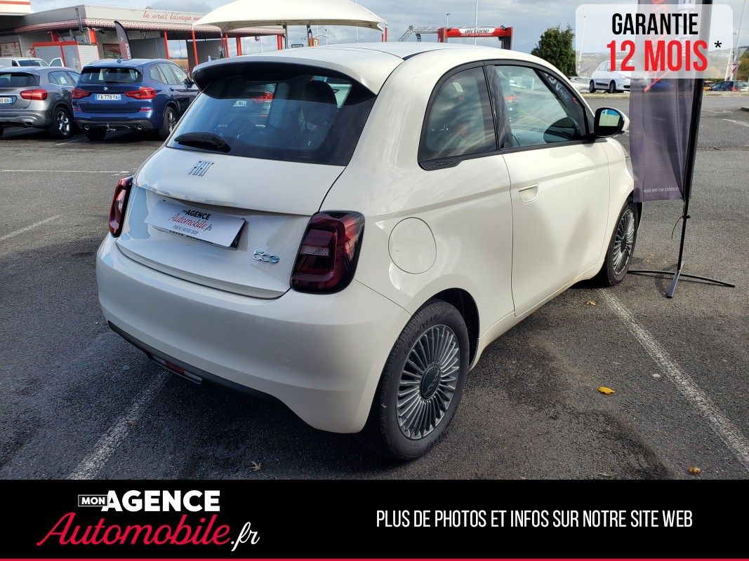 Previous Next Demander un accès pour découvrir le tarif 2022 millésime 38 843 kilométrage Electrique énergie Automatique transmission 2022 millésime 38 843 kilométrage Electrique énergie Automatique transmission Marque Fiat Modèle 500 E 95CH ICONE 23.8 KWH Couleur Blanc Chevaux fiscaux 3 CV Taux d'émission de CO2 0 Vignette Crit'Air Nombre de portes 3 portes Places assises 4 Référence 0239549 Options & équipements Intérieur Extérieur Sécurité Autres 2 Vitres électriques Aide au démarrage en côte Allumage automatique des feux Android Auto CarPlay Climatisation automatique Direction assistée Détecteur de pluie Fermeture centralisée à distance Frein de parking automatique Limiteur de vitesse Ordinateur de bord Ouverture/Fermeture sans clé Prise USB Régulateur de vitesse Sellerie tissu Système Bluetooth Système GPS Volant multifonctions Volant réglable en hauteur Rétroviseurs électriques Rétroviseurs dégivrants Phares anti brouillard Peinture intégrale Jantes alu Full Leds ABS - AFU Airbags Anti-démarrage Anti-patinage Contrôle de pression des pneus Détecteur dépassement de ligne ESP Fixation ISOFIX Freinage d'urgence Double des clés Contact & informations Agence de GOND-PONTOUVRE 16160 GOND-PONTOUVRE Téléphone 06 43 92 40 97 Adresse email angouleme@monagenceautomobile.fr