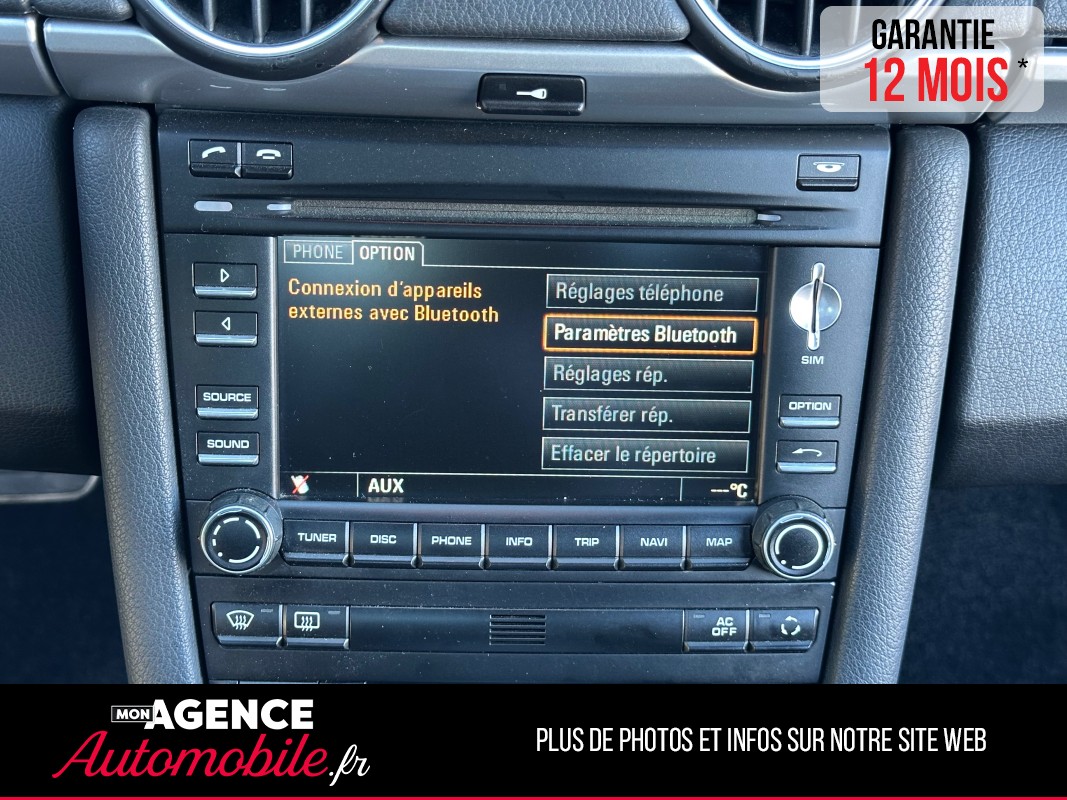 Previous Next Demander un accès pour découvrir le tarif 2012 millésime 112 850 kilométrage Essence énergie Automatique transmission 2012 millésime 112 850 kilométrage Essence énergie Automatique transmission Marque Porsche Modèle CAYMAN S PDK 3.4 320ch 1ère Main *Jantes OZ 19*PSE*PSM*Volant Sport / GARANTIE 12 MOIS Couleur Gris Chevaux fiscaux 22 CV Taux d'émission de CO2 221 Vignette Crit'Air Nombre de portes 2 portes Places assises 2 Référence 0241386 Options & équipements Intérieur Extérieur Sécurité Autres 2 Vitres électriques Accoudoir central Aide au démarrage en côte Climatisation automatique Direction assistée Détecteur de pluie Fermeture centralisée à distance Ordinateur de bord Palettes au volant Prise AUX Régulateur de vitesse Sellerie cuir Sièges électriques Système téléphone Bluetooth Volant cuir Volant réglable en hauteur Xénon Rétroviseurs électriques Peinture intégrale ABS Airbags Anti-démarrage Anti-patinage ESP Double des clés Contact & informations Agence de VERN-SUR-SEICHE 35770 VERN-SUR-SEICHE Téléphone 06 21 02 39 64 Adresse email vernsurseiche@monagenceautomobile.fr